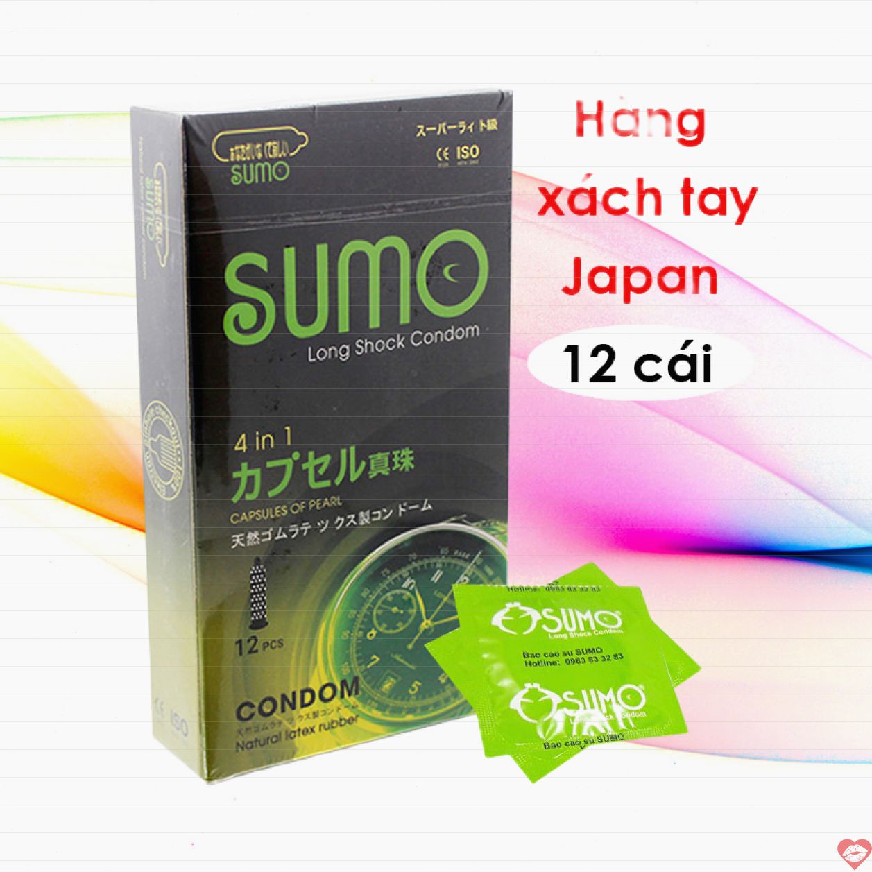 Bao cao su Sumo 4 in 1 là sản phẩm bao cao su tích hợp 4 tính năng trong 1 sản phẩm đại lý . Bao cao su Sumo có xuất xứ từ Nhật Bản tự động , thiết kế độc đáo địa chỉ , siêu mỏng giá rẻ , tăng khoái cảm hơn khi quan hệ.