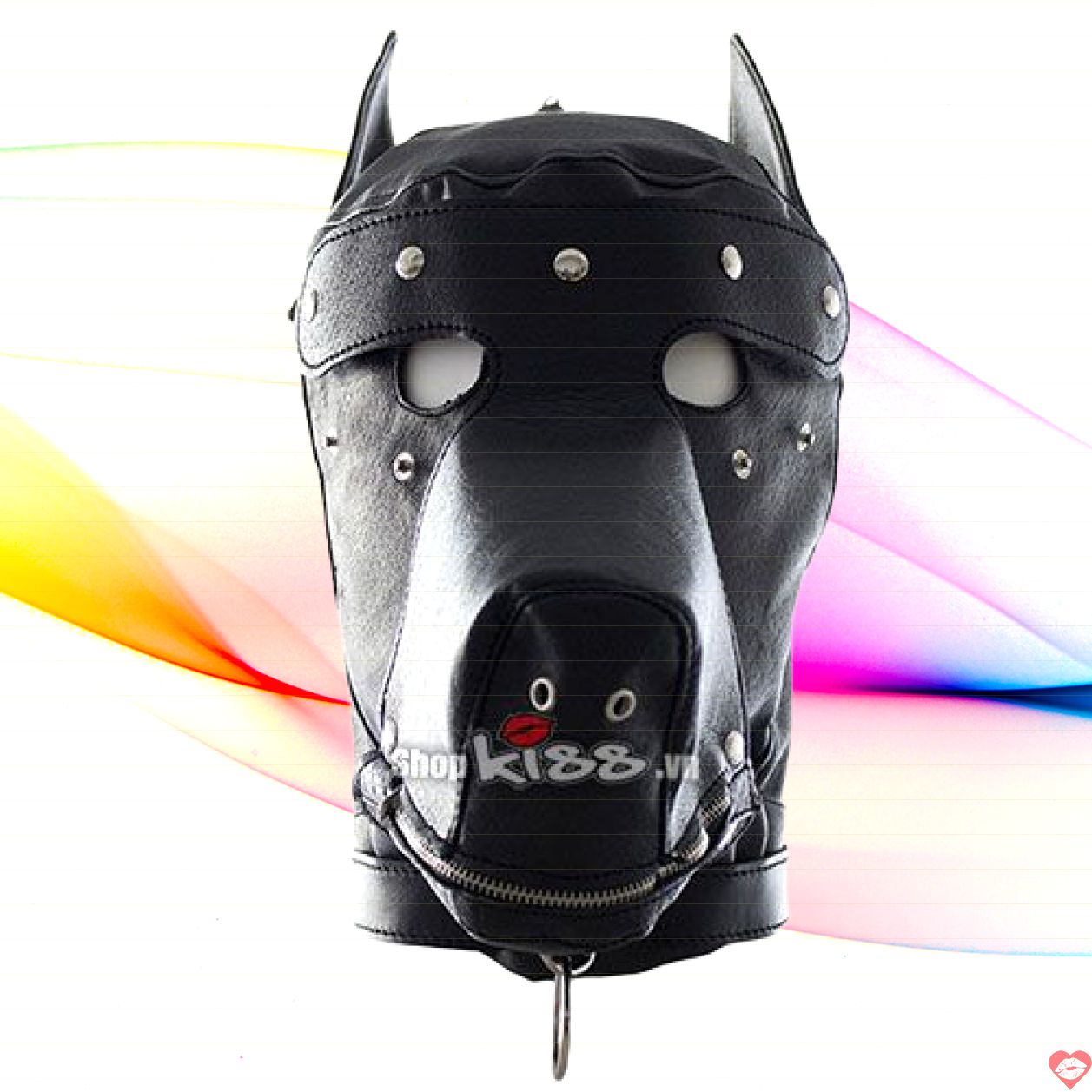 Mặt nạ bạo dâm đầu chó khóa kéo miệng da PU cao cấp