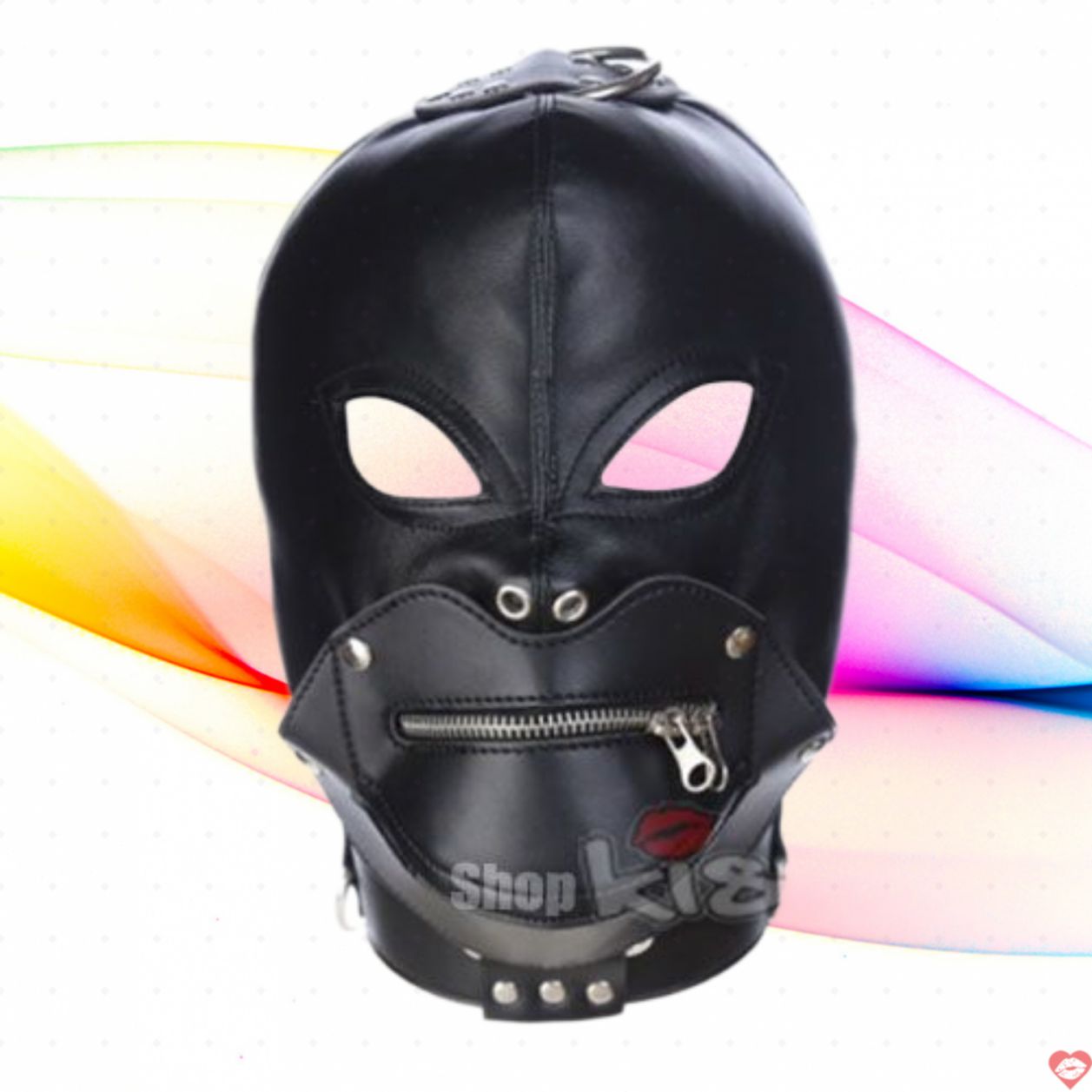 Thiết kế: Mặt nạ da full đầu có kéo khóa miệng.