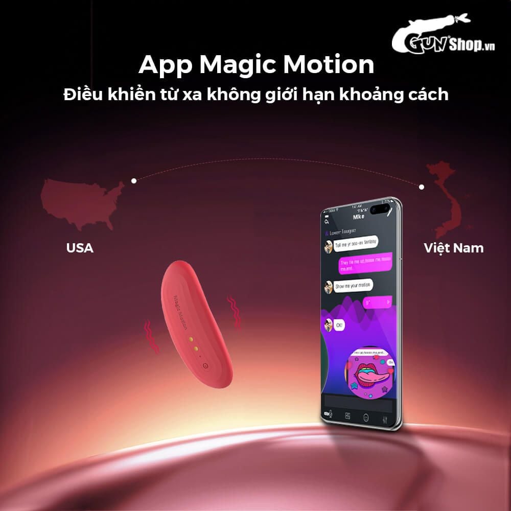 - Đặc điểm: Điều khiển bằng ứng dụng điện thoại không giới hạn khoảng cách trên toàn cầu khi 2 người ở 2 địa điểm khác nhau đăng ký , 10 chế độ rung tư vấn , lấy hàng có thể gắn quần lót khuyến mãi , dùng sạc nơi bán , chống thấm nước.